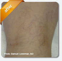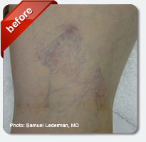Laser therapy treats both tiny superficial face veins and deeper blue leg veins, for both men and women of all skin tones. Although results are frequently seen immediately for small veins, larger veins may require several treatments spaced over a few weeks’ time.